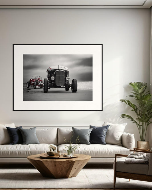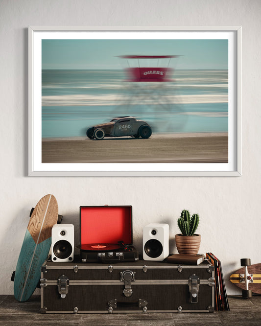 Vintage Hotrod Beach Racing Print - Classic Car Wall Art TROG Decor
