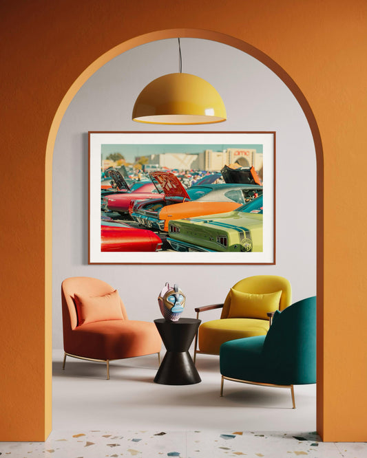 Classic American Muscle Cars Wall Art Vibrant Retro Muscle Car Print Nostalgic Pop Color Decor Automotive Fine Art Pin-up Poster