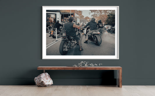 Brooklyn Motorcycle Cruise: Vintage and Modern Roaring Through the Streets - Captivating Fall Winter Wall Art Photo Poster Art Print
