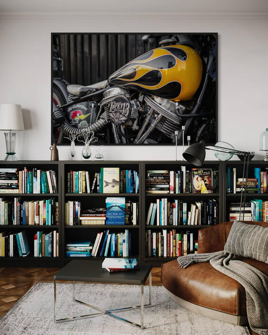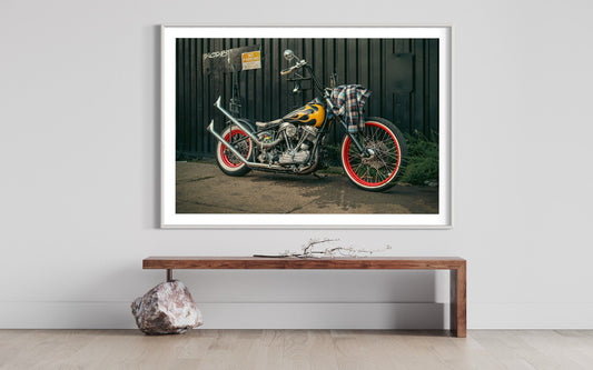 Fine Art Print - Classic Chopper Wall Art - Motorcycle Photography Print- Vintage Biker Flame Indian Larry Modern Art Deco Poster Photo