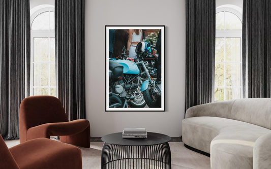 Fine Art Print - Blue Ducati GT 1000 Cafe Racer Motorcycle Wall Art, Cafe Racer Decor, Custom Motorcycle Gift for him, Vintage Bike Decor