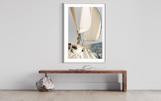Fine Art Print - Coastal triptych wall art, set of 3 ocean waves and sailboat, for serene neutral decor, calm beach photo for coastal decor