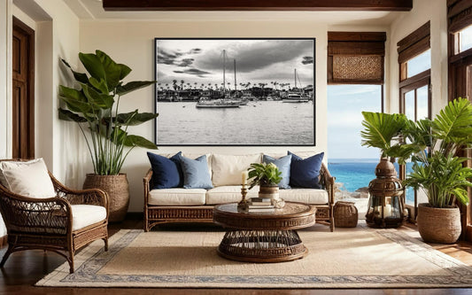 Fine Art Print, Black and white Coastal sailboat harbor Wall Art, palm tree Marina, Venice Beach, coastal decor, beach, California, gift
