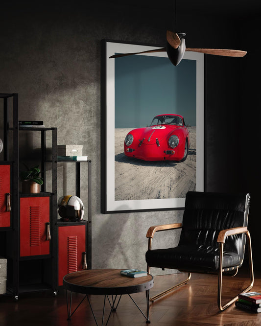 Fine Art print - Rob Ida Porsche 356 Vintage Racing Wall Art Print- Coastal Beach Red Classic- Automotive Poster, gift ideas, garage decor