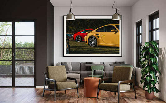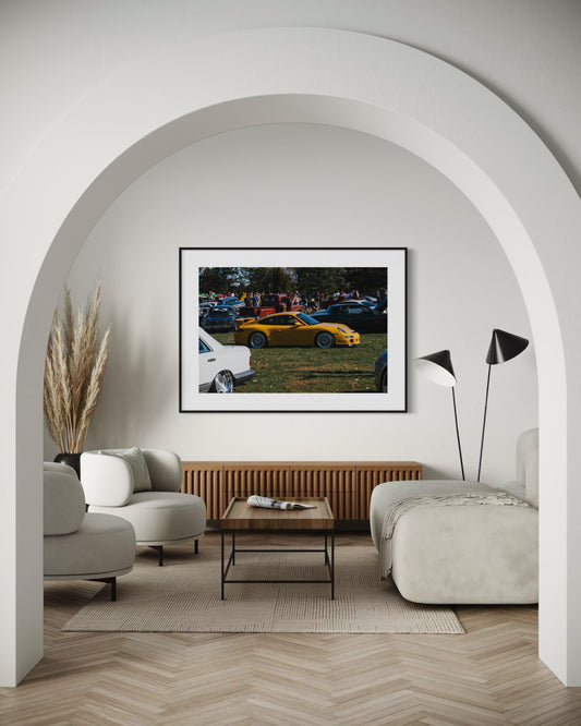 Fine Art Print - Yellow Porsche 911 Wall Art - Vintage Classic Car Decor - Poster for Living Room Decor, man cave, garage, gift for him