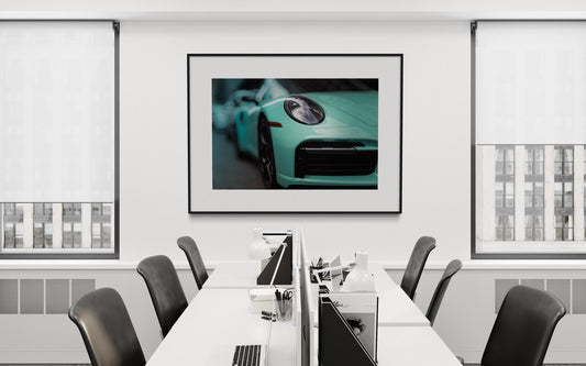 Fine Art Print - Porsche 911 Turbo S in Mint Green - Automotive Wall Art for Office, room, garage decor poster Print, carrera, gt3