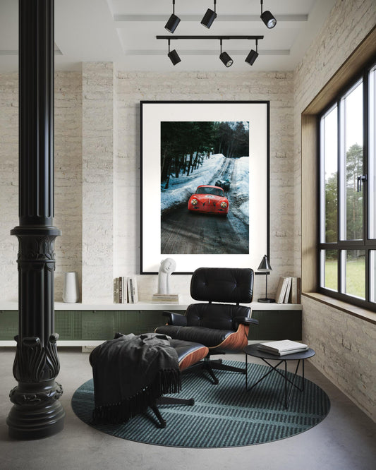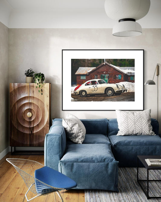 Fine Art Print - Vintage Porsche 356 Winter Rally Wall Art Snow Cabin Decor, Car Lover gift, Housewarming, man Cave Decor, Sports Car