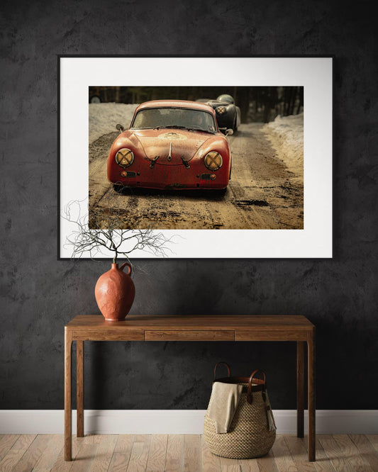 Fine Art Print - Vintage Porsche 356 Winter Rally Drive Wall Art, Classic Car Automotive Decor, Car Collector Gift, Garage, Office, Man Cave