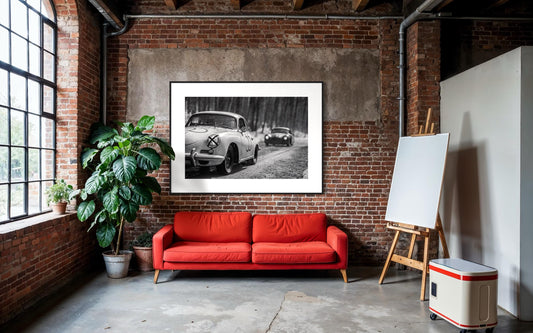 Fine Art print - Porsche 356 Winter Rally Wall Art, Black White Poster, Monochrome, Office Decor, Cabin, Garage, living Room, Man Cave, Gift