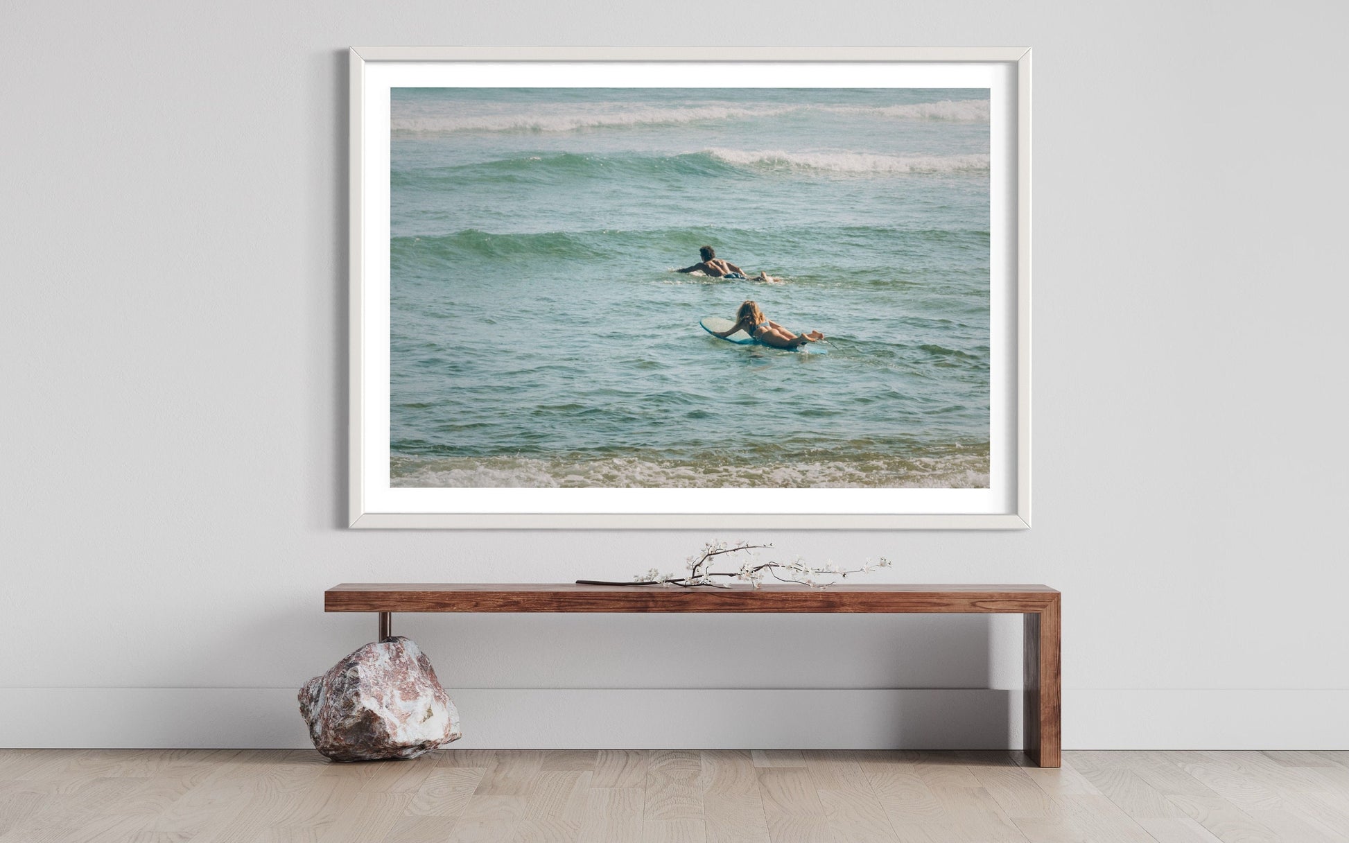 This fine art photograph captures the serene beauty of surfers waiting for the next wave. This print radiates tranquility and adventure, perfect for ocean lovers and coastal-inspired interiors. 🌊🏄